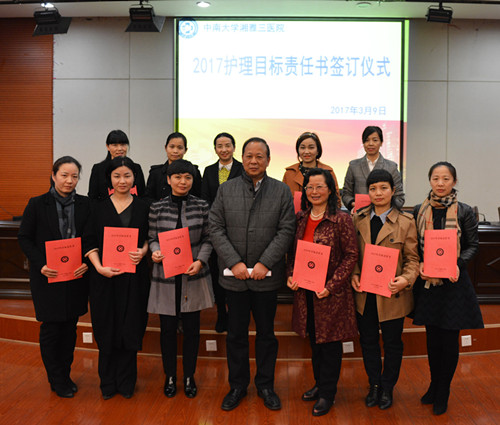 护理部坚持每年签订目标责任书,推动了护理管理的标准化、规范化、常态化,提升了护理队伍的执行力和责任感。今年目标责任书的确定是在2016年的基础上,结合《全国护理事业发展规划(2016-2020年)》、国家和湖南省护理质控中心的要求进行完善;分为服务指标、质量安全、培训考核、教学科研、公益拓展、行风建设等6方面,今年把行风建设作为单列指标,强化“一岗双责”的落实,各科室根据专科特点和要求进行增减,经过了护理部的反复商讨和审核。