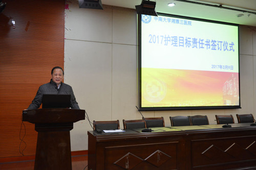 3月9日下午,护理部在外科楼二楼学术报告厅举行目标责任书签订仪式,主管院领导黄飞舟副院长、护理部成员、全体护士长、质控组长及培训组长共200余人参加会议。会议由丁四清主任主持。