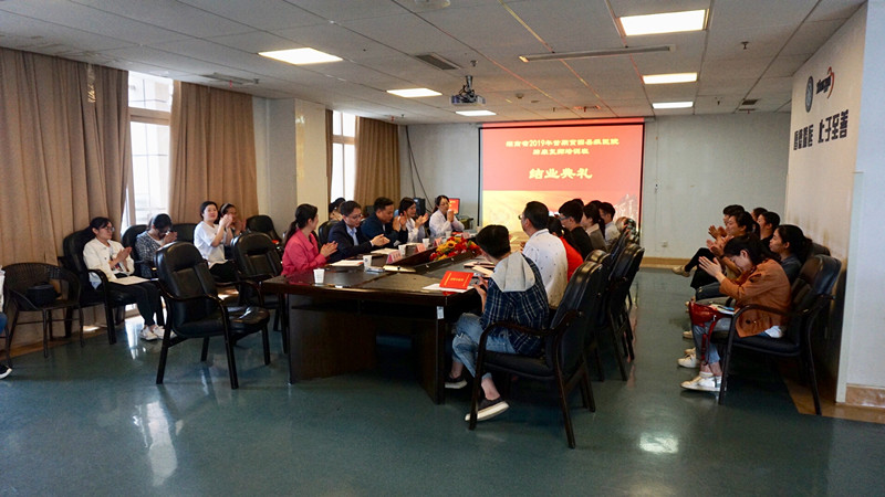 5月15日,由中南大学湘雅三医院承办的湖南省2019 年首期贫困县县级医院肺康复师培训项目结业典礼在外科楼十九楼举行。湖南省卫生健康委医政医管处欧阳煜主任、贺苗主任、湘雅三医院护理部严谨主任,呼吸与危重症医学科刘纯副主任与科室骨干教师、护理教研室易琦峰副主任、康复科谭敏老师及湖南省2019 年首期贫困县县级医院肺康复师培训班学员参加结业典礼。