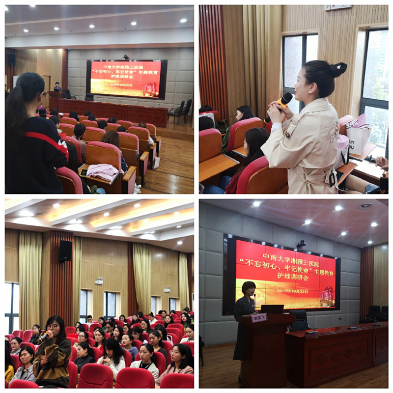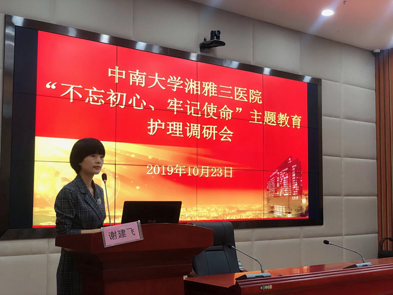 10月23日下午,中南大学湘雅三医院护理部在科教楼三楼会议室举行了“不忘初心 牢记使命”主题教育护理部调研暨护理职业形象培训。新湘雅护理礼仪小组、男联会、2019年新护士、各科室代表近200人参加调研会和培训。本次调研会由护理部副主任谢建飞主持,护理部全体在院成员参加。