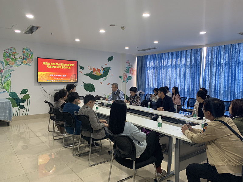 11月10日,作为中南大学湘雅三医院建院30周年系列学术活动及湖南省第三期县级综合医院肺康复师同质化培训班系列讲座之一,护理部邀请复旦大学附属中山医院李善群教授在外科楼二楼学术报告厅举行“中国呼吸病康复的现状”专题授课。来自湖南省基层医院第三期肺康复师全体学员、医院呼吸与危重症医学院相关科室医护人员近200人参与讲座。讲座由护理部主任严谨教授主持。