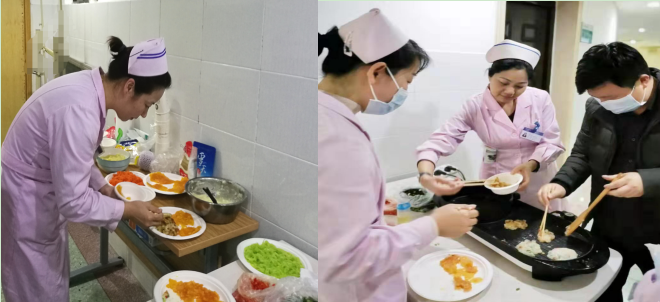首先,主管护师周正容为患者详细讲解了慢性肾病的饮食原则、低蛋白饮食的具体要求和烹饪技巧,让患者懂得了肾病饮食的重要性,以及在保证机体足够热量的时候怎样合理控制蛋白质的摄入。接下来,护士长夏妙娟、吴琼英与护士刘苗带领病友现场制作了色、香、味俱全的低蛋白食物,给病友们带来了一顿知识与美食的大餐。