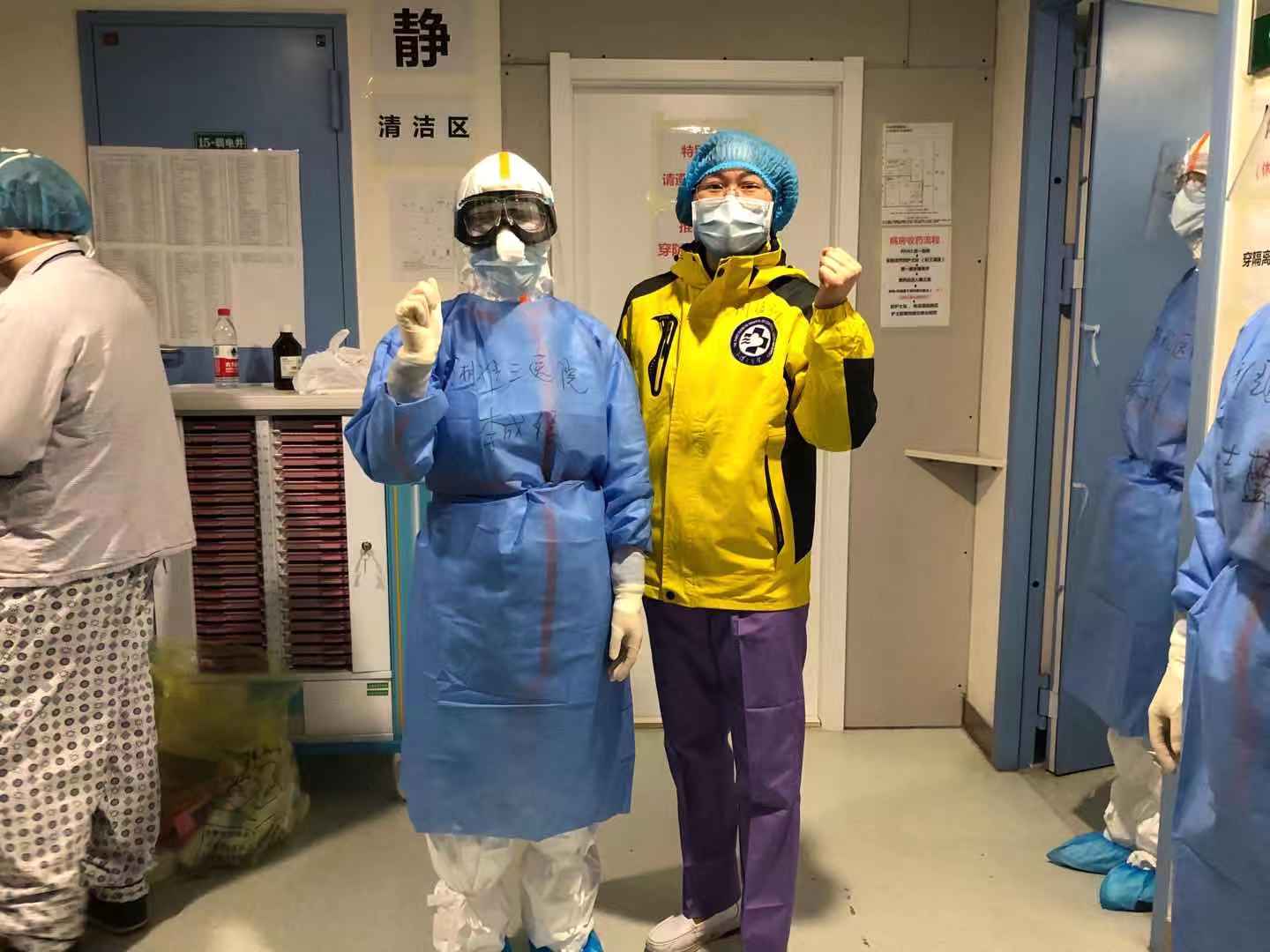 春节期间,是你值守病房,没休息过一天。医院开放发热门诊,也是你第一个报名,并立即响应医院号召,紧急抽调了两名护士支援急诊。但是你又担心我们会遇到新冠患者,时刻提醒我们保护好自己。2月7日,支援武汉的通知下来了,你又是早早报名,作为一名临床工作者,你应该比任何人都清楚此行的风险和挑战,但没有丝毫犹豫,你毅然出征,带着科里三位护士成为了第一批援助武汉的人员。没有太多的辞藻,只是简短的在姐妹群里进行通知,仿佛这只是一次常规的业务学习。到了武汉,你又成为了这个新集体的组长,细致的安排小组工作,像个陀螺一样,在这场战役中不停的转。我们都知道,除非我们打赢了这场仗,否则你将一直转下去。