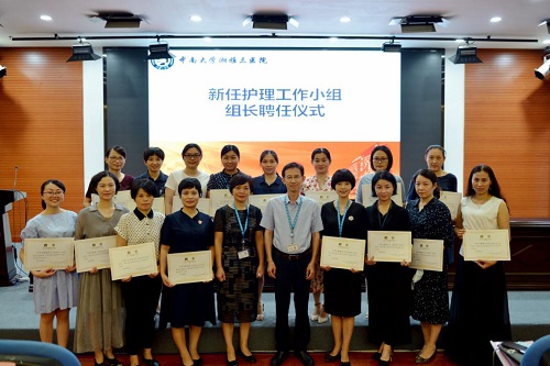 会议第二项由护理部主任严谨宣读2020届新任护理工作小组组长名单。重组后的护理小组涵盖护理安全用药管理、流程优化与信息管理、护理科研、肿瘤护理、“新湘雅”男联会、伤口造口护理、灾害与应急护理、营养支持护理、老年护理、压疮风险管理、静脉治疗护理、手术护理安全管理、儿科护理、糖尿病护理、慢病护理、“新湘雅”护理礼仪16个小组。欧阳文和严谨为护理工作小组组长颁发聘书并合影留念。科护士长张秋香作为小组代表进行发言,她表示,在护理工作小组的2.0时代,应更好地去继承与发扬,突破与创新;并希望通过多学科交互学习,凝心聚智、实干笃行,为医院高质量发展做出护理人的贡献!