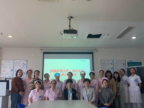 王玲示范了淋巴水肿手法引流综合消肿治疗,大家纷纷表示受益匪浅。她表示:自开展淋巴水肿治疗门诊以来,已制定全面的评估、评价体系,建立了患者数据库,同时正在积极撰写论文、申报课题,将会把淋巴水肿护理作为乳腺护理专业深入研究的方向,完善管理体系、组建专业梯队。