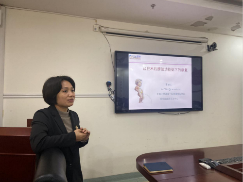 首先,李旭红热情讲授了《盆腔术后膀胱功能低下(UAB)的康复》,从膀胱的解剖与生理特点、盆腔术后UAB的诊断及康复治疗三方面切入,结合宫颈肿瘤治疗方式及我院康复科丰富的实践案例,全面系统地讲解了盆腔术后UAB的发病机理及相应的康复方法。接着,肿瘤护理小组核心成员、产科护师钱湘子以《宫颈癌性功能障碍研究进展—基于护士视角》为题进行了主题演讲,她指出宫颈癌发病呈年轻化趋势,目前护士和患者讨论“性康复”问题时还存在一些障碍,同时对如何提高医护人员对宫颈癌患者“性康复”的认知方面提出了专业的思考和建议。通过两位专家的精彩讲授,大家从多学科的视角深入了解了肿瘤盆底功能康复的发展现状及现存问题,也明确了肿瘤功能康复护理的工作任务和发展契机。