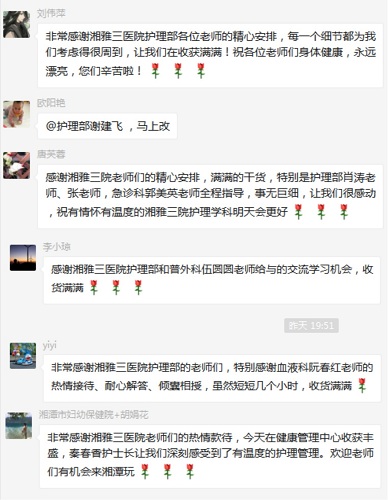 跟班结束后,医院护理部通过问卷调查的方式,对学员的培训效果进行回访,最终获得97分的满意度,同时,微信群中也好评如潮,纷纷表示跟班培训效果显著。中南大学湘雅三医院护理管理的专业化、精细化、规范化,受到学员的广泛好评;护士长的热情接待、悉心指导以及毫无保留的传、帮、带、教,为基层医院提供了很好的学习机会,使学员深感不虚此行,受益匪浅。