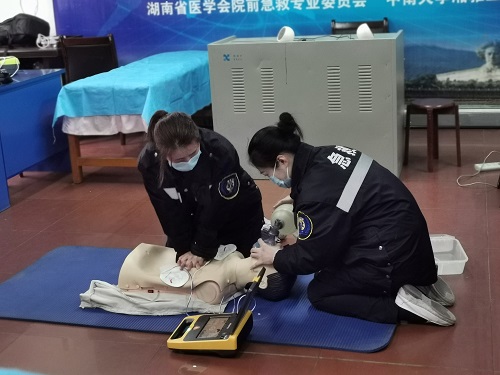 危急重症片区科护士长肖涛对心脏骤停的定义、CPR的目的及意义、除颤仪的使用与维护等理论知识进行了讲解。120急救中心团队模拟了门诊患者发生心脏骤停的场景并对CPR的全过程进行了讲解及示范。在两位老师的指导下,大家分组练习,参加培训的选手逐一考核过关。