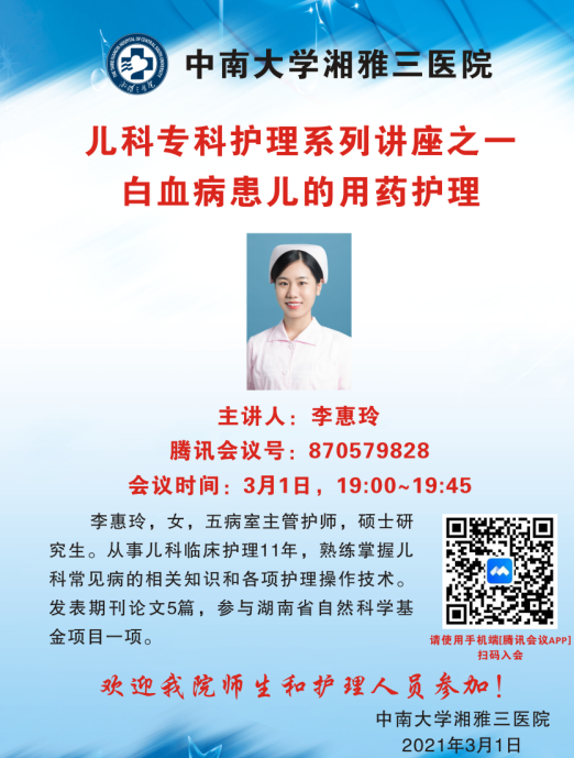 3月1日,为提高解决儿科临床护理问题,紧跟儿科医疗的飞速发展,儿科护理小组突破时空的限制举办了无接触“儿科专科护理系列讲座”线上培训。