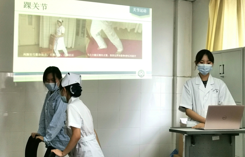 中南大学护理学院研二学生鲁校校结合PPT阐述了循证护理的概念、目的与基本步骤。南华大学甘旻菲同学进行了详细的病例汇报,在场的老师和同学们对病程经过及治疗手段有了基本了解。中南大学护理学院研二学生郭琴琴通过查询相关文献,将总结归纳的系统性红斑狼疮功能锻炼的系列证据进行了分享。来自南华大学的三名同学现场以情景模拟的方式生动演绎了体格检查和功能锻炼的方法。汇报结束后,师生展开了积极讨论,通过交流、剖析,将循证思维运用到临床护理工作中,以切实解决临床实际问题。