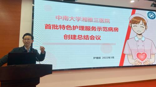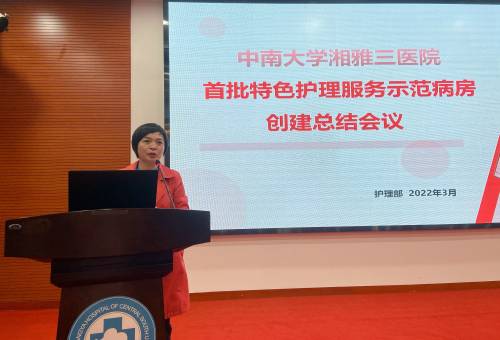 3月4日上午,中南大学湘雅三医院护理部在医院外科楼2楼学术报告厅举办首届特色护理服务示范病房创建总结汇报会,医院党委委员、副院长欧阳文出席会议,汇报邀请党总支书记代表苏莉、朱锐、孙慧蓉、余希、毛赤丹及医务部主任张翼担任评审专家,护理部全体成员、全体护士长参加会议。会议由护理部科护士长龚妮主持。
