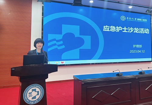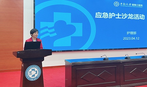 4月12日,中南大学湘雅三医院护理部在外科楼2楼学术报告厅举行应急护士沙龙,护理部成员、应急护士导师、全体应急护士出席会议。胸痛急救应急护士张爱迪博士主持本次活动。