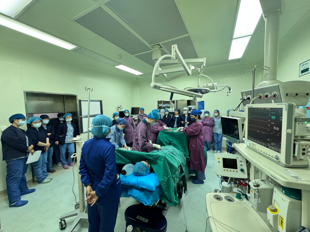 演练首先模拟了医院急诊接收一名因严重车祸导致心脏破裂、生命垂危的患者,需立即进行开胸心脏修补手术。此次演练高度贴近临床实际,演练了从接诊通知、人员快速集结、物资设备到位、抢救药物配置,到术中默契配合的全流程。整个过程紧张有序,参与人员迅速进入角色。巡回护士沉着冷静,快速完成多通道建立与抢救药物配制;洗手护士技术娴熟,器械传递准确无误,配合医生完成开胸、心包悬吊、血管套带、荷包缝合、建立体外循环等关键步骤。演练重点突出了在紧急情况下手术中心护理团队与麻醉医生、手术医生、体外循环组之间的默契配合与高效沟通。