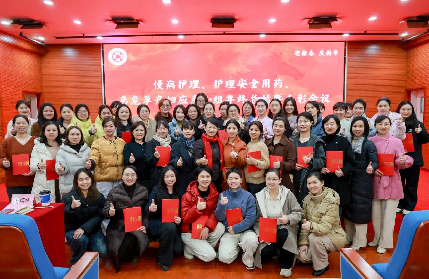 2月11日下午,慢病专科护理小组、护理安全用药专科小组与急危孕产妇应急小组在中南大学湘雅三医院外科楼2楼学术报告厅联合召开年终总结暨表彰会议。护理部副主任易琦峰、健康管理中心护士长刘佳、产科护士长唐琴应邀出席。护理部副主任、组长秦春香携慢病护理小组、护理安全用药小组,以及急危孕产妇应急小组第1-3批成员共同参与。会议由慢病小组秘书、护理安全用药小组副组长罗佩佩主持。
