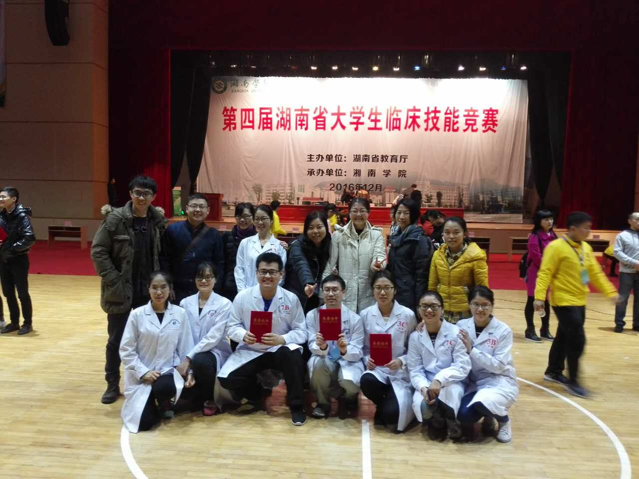 12月3日,由湖南省教育厅主办、湘南学院承办的第四届湖南省高等医学院校大学生临床技能竞赛在郴州湘南学院体育馆举行。全省7所高等医学院校的12支队伍参赛,我院负责组队、培训了2支队伍代表中南大学参赛。最终,由蔡蕾、肖诚、李茹、赵械雄等组建的中南大学1队表现出色,以初赛、复赛第一名的绝对优势闯入决赛,荣获特等奖;由陈澔、黄翠玉、张筠晗、陈超等选手组建的中南大学2队亦表现突出,荣获三等奖。选手陈澔获初赛单项第一名。尽显湘雅风采,竞赛场上引来了全场志愿者、观摩人员和巡场的裁判的围观和喝彩。