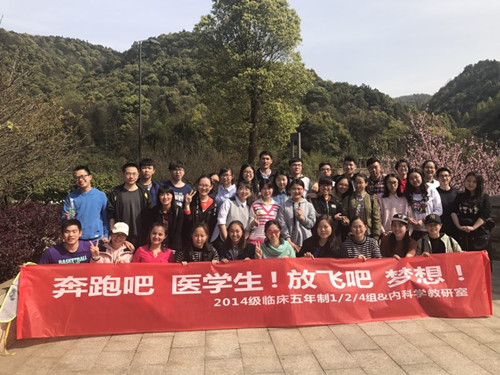 3月26日下午,2014级临五大班1、2、4组的同学们前往梅溪湖桃花岭公园开展主题为“放飞医学梦想,承启智慧之光”课外活动。