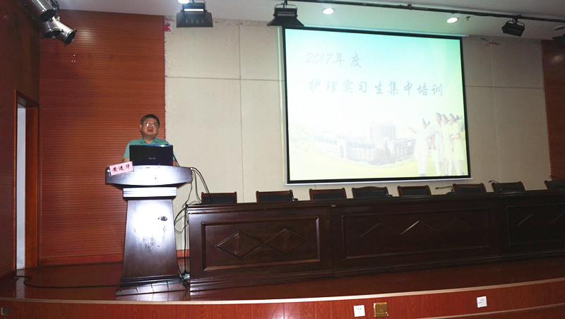 6月30日,我院2017年度护理实习生集中培训正式启动。副院长黄进华以及护理教研室全体人员、教学组长代表急诊科刘丽平、2017年度护理实习生代表参加开幕式。