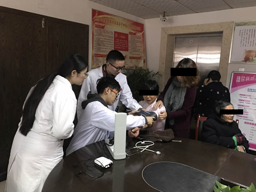 11月12日义诊,在天顶乡社区卫生院进行。内分泌科赵少俐、赵立玲、杨幼波等老师对社区的老年病友进行糖尿病与骨质疏松症健康知识教育。同学们积极参与其中,参与测量血糖、血压,同老师们一起对社区的老年病友进行了健康宣教。