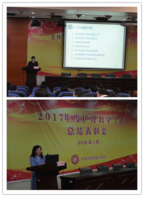 朱晒红副院长对护理教学工作表示了高度肯定及殷切期盼,他指出,作为一门独立的学科,湘雅护理是中南大学的“双一流”学科,我们的护理团队要在现有工作及硬件的基础上,加强护理学科体系建设,完善考核评估方法,注重培养护理人员的六大核心能力;要用科学的方法来解决临床的实际问题,要进一步与国际接轨,加强学科内涵建设;尽管2018年医院面临新的挑战,我们要齐心协力,创新技术,共同为创造三院美好的明天努力。