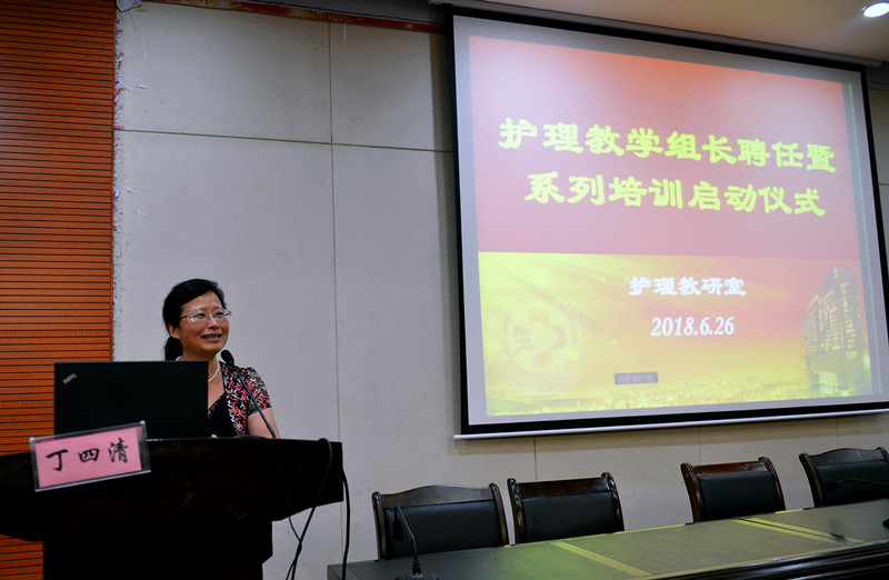 护理部丁四清主任对教学组长的聘任表示祝贺,她指出这是一份责任与使命,要求各位教学组长传承湘雅精神,不断提升自己综合能力,协助护士长工作,为“双一流”学科建设贡献力量。