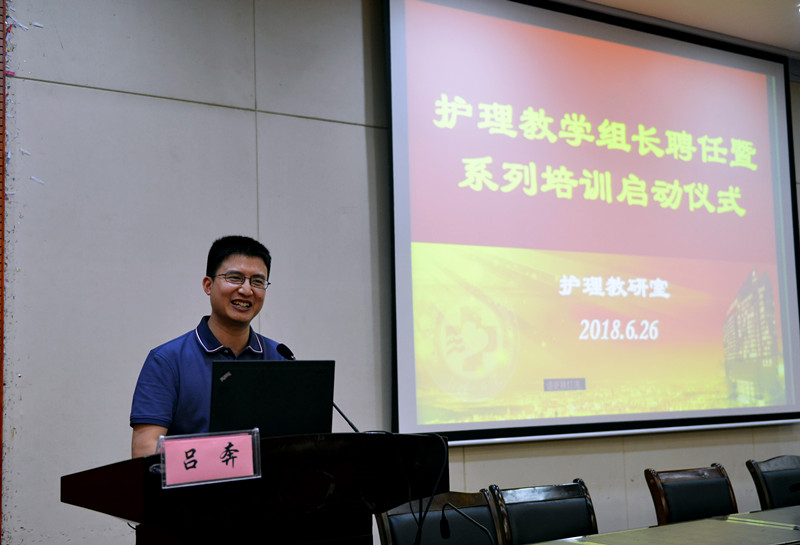 6月26日下午,湘雅三医院2018学年护理教学组长聘任及系列培训启动仪式在外科楼二楼学术报告厅举行。副院长吕奔、护理部及护理教研室全体人员、全体护士长、教学组长参会,会议由教研室副主任易琦峰主持。