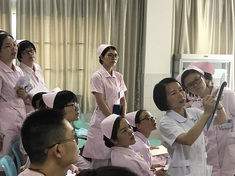 近日,湘雅三医院全体教学组长在湘雅护理学校接受了为期一周的临床护理教学能力培训,湘雅护理学院副院长陈嘉、中南大学教学督导专家张静平、社区护理学系主任王秀华、临床护理学系主任周乐山、教学办主任毛婷等老师围绕“护理诊断与临床思维、临床带教中问题与对策、见习带教、案例教学法、问诊、全身体格检查、病例分析”等教学主题展开系列讲授与操作示范、小组讨论。