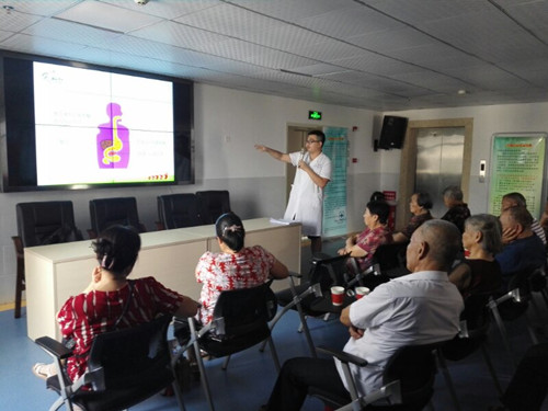 讲座针对糖尿病的成因、症状、并发症、以及治疗进行了详细讲解,让大家了解到合理膳食、经常运动是预防糖尿病的重要措施,可以减少糖尿病前期人群的发生风险,并提出了合理的养生和保健建议。同学们利用课余时间查阅了大量的糖尿病科普知识及临床指南用简洁明了、通俗的语言深入浅出地将糖尿病产生的原因和预防知识逐一讲解,并结合日常生活实际,重点强调糖尿病常见治疗药物的分类及禁忌,强调做好自我监测,控制病情的发展的重要性。在场病友听的很认真,不时的点头赞同,并纷纷举手针对自身情况向医生提出问题,老师们都给予了详细的解答。