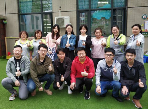 活动全程非常融洽,到结束告别之时,同学们和孩子们依依不舍地挥手,并说了很多鼓励孩子们的话语,幼儿园老师们与辅导员陈莉老师、同学们合影,留下珍贵的一幕。