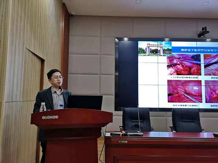 本次报告主要聚焦妇产科临床工作中的腔镜技术,与一些新技术的介绍上。首先,对一些临床中常见的妇科疾病腔镜手术进行了图文并茂的展示与讲解,其中不乏同学们在理论课上已经接触过的疾病,如子宫肌瘤,子宫内膜异位症,异位妊娠和巧克力囊肿等……展示课件中选取了许多腔镜手术过程中的图片,清晰地将病变部位、病变的性质、病变的大体表现生动的展示给了同学们,通过这种方式既简单地让同学们对腔镜技术有所体会,又直观地丰富了同学们平日理论学习中的一些抽象文字描述,使之对相应疾病有了更加立体和全面的认知。