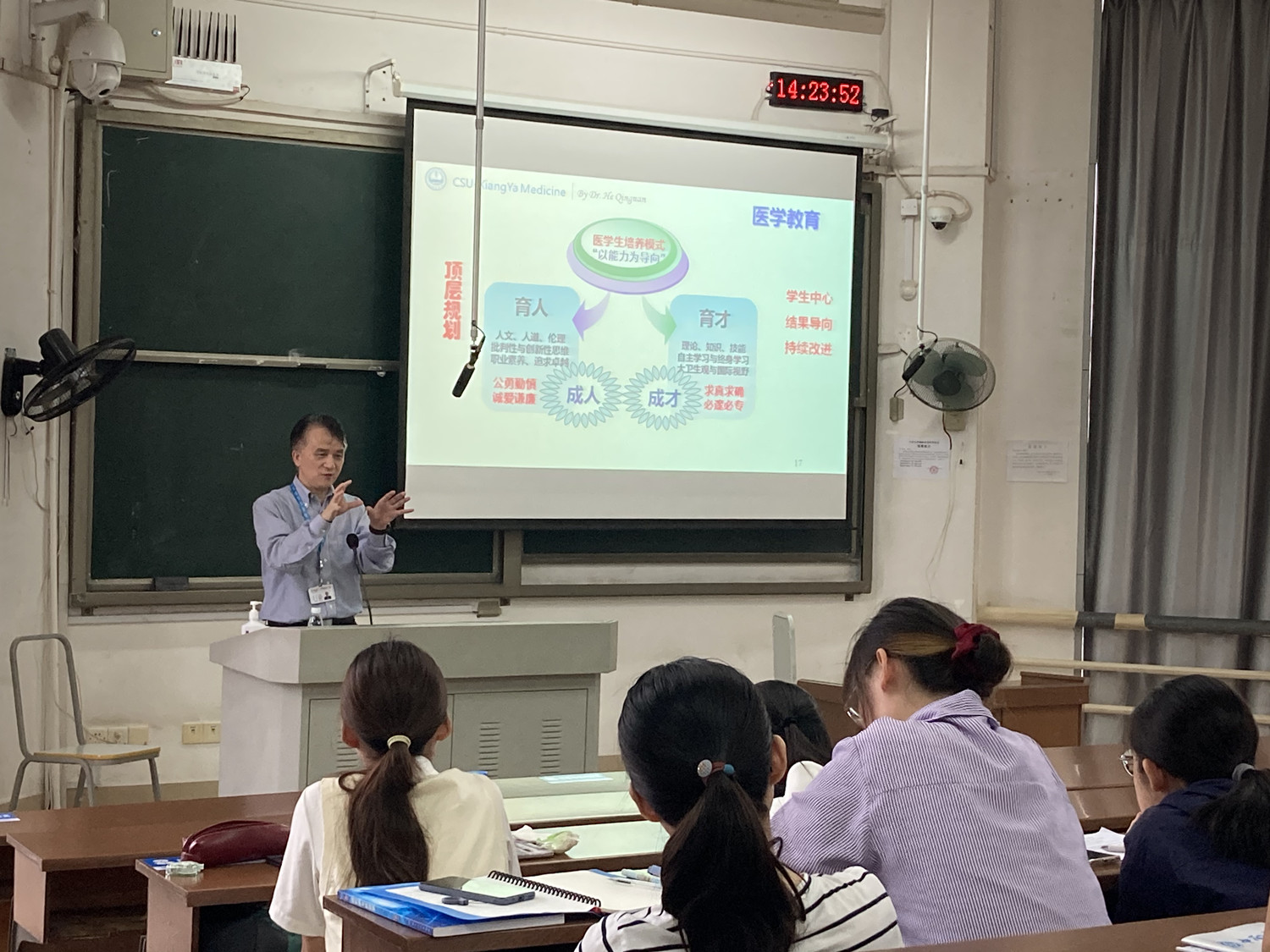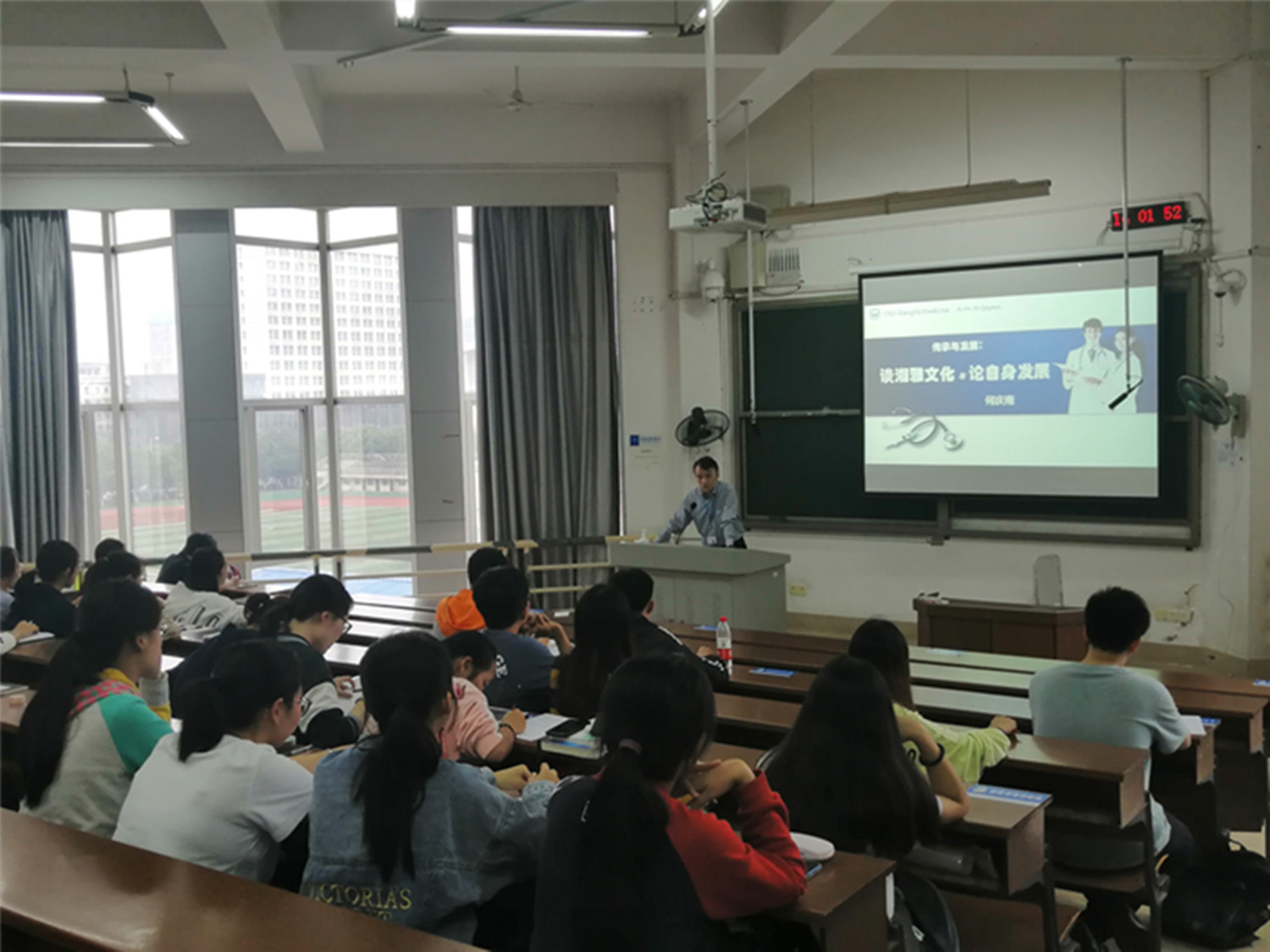 9月25日,湘雅医学院卓越医师班(湘雅三医院班)临床特色课程在湘雅医学院福庆楼T307教室正式开课。中南大学湘雅三医院党委书记何庆南教授以“传承与发展:谈湘雅文化与论自身发展”为题,给卓越医师班同学带来了生动的新湘雅第一课。