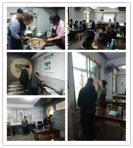 雨花斋是一家以提倡健康素食,关注生态环境、弘扬传统文化为主旨的非营利、互助式公益餐厅。它每日在限定时间内免费为民众提供午餐。同学们达到雨花斋后,在工作人员的安排下,首先参与了义工活动。有的负责打扫大厅,擦拭玻璃,摆放桌椅,准备餐具;有的负责帮助后厨洗菜、切菜,为中餐做准备;有的负责为接待、引导客人用餐,有的负责为客人配餐,采用吃多少取多少的原则,严格杜绝浪费粮食。同学们分工合作,虽然不很熟练,但都是认认真真地完成自己的分配任务。闲暇之余,大家还一起学习了部分中华传统文化礼仪、诵读国学经典。最后所有义工体验素食用餐、践行光盘行动。同学们在体验活动过程中,积极热情的态度获得了雨花斋相关负责人高度的肯定与赞赏。