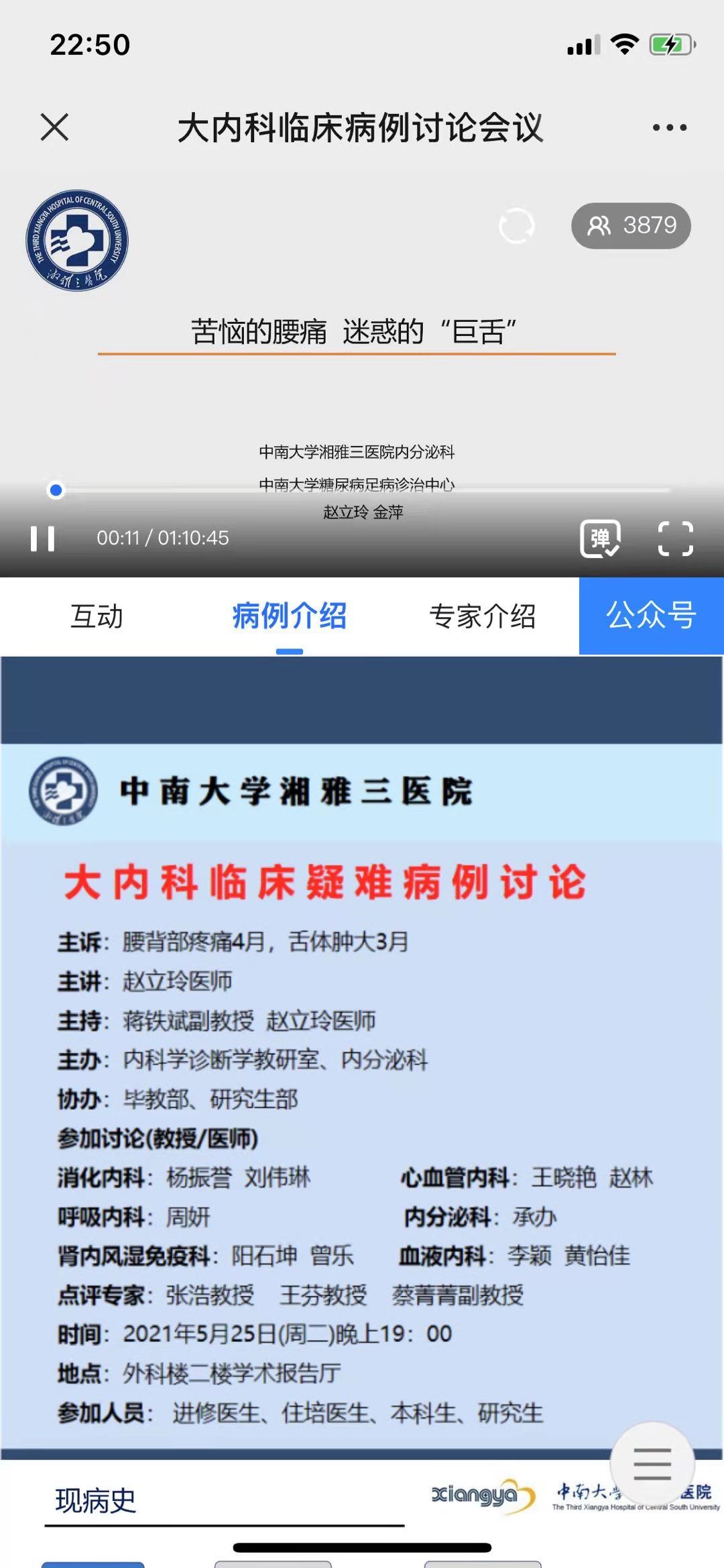 本次病例讨论会由内分泌科赵立玲和内科教研室副主任蒋铁斌共同主持。出席会议的有内科学教研室副主任蔡菁菁,呼吸内科周妍、心血管内科王晓艳、血液内科李颖、消化内科杨振誉、肾内风湿免疫科阳石坤等。