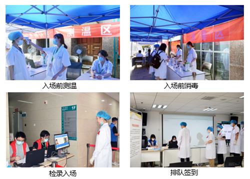 根据疫情防控常态化要求,考试将疫情防控措施落实到各环节中,结合湖南省卫健委医学考试中心文件精神和医院防控要求,制定疫情防控方案和应急预案。对考官、考务和考生等所有涉考人员开展健康情况摸排,严格落实“五查”(查身份证、查准考证、查体温、查健康码和行程码、查疫苗接种证明或3日内核酸检测阴性结果证明),并按要求做好环境和人员消毒。考试期间,医院感染控制中心和120急救中心人员全程指导,做到疫情防控无死角、无漏洞,确保考试期间“零感染”。