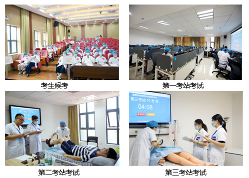 学校和医院领导高度重视此次任务,考前医院党委委员、副院长朱晒红组织相关部门负责人召开考务协调会议,对考务工作做了详细部署。在相关部门大力支持下,临床技能中心组织制定岗位职责、落实岗位分工,选聘考官、招募志愿者,精心准备考场,并在考前分批对工作人员进行了严格的岗前培训和模拟演练,以保证考试顺利进行。