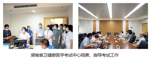 考试期间,湖南省卫健委医学考试中心副主任周婷、张梓睿老师和首席考官郭莹教授全程驻点督导。6月17日,湖南省卫健委医学考试中心主任易新娥、湘雅医学院副院长陈俊香在朱晒红副院长的陪同下对考试进行巡查督导。易新娥主任一行对医院严谨的考务管理、整洁的考场环境、严格的疫情防控等给予了高度评价,表示此次考试组织有序、职责明确、执考严明、防控得力、保障齐全,各环节衔接紧密流畅,体现了学校和医院对考试的高度重视,展现了“新湘雅”的严谨作风。她希望湘雅三医院基地作为湖南考区的“标杆”,要充分发挥“新湘雅”的人才优势、技术优势,争创医师资格考试实践技能考试国家区域示范基地。