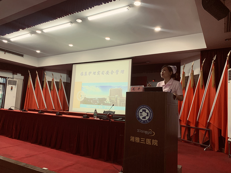 7月8日至9日,中南大学湘雅三医院2021年度全体护理实习生集中培训在门诊五楼进行,由护理教研室副主任黄辉主持。