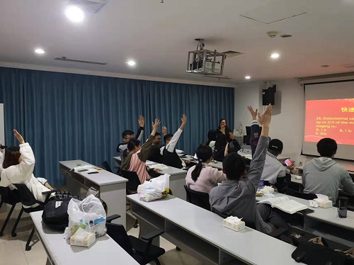 抢答赛环节,题目内容涉及到妇产科学一些重要理论知识。在公平公正又精彩有趣的赛制下,同学们灵活运用教材上的知识,井然有序地回答问题,最终第2小组凭借扎实的基础知识和敏捷的思维获得了第一名。李立杰老师在揭晓答案的同时也会对难度较大的题目进行简要的讲解。比赛间歇,姚健波同学表演了唱歌,缓和了比赛的紧张气氛。