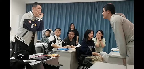 第二阶段的题目内容涉及到妇产科学重点名词解释。同学们想出了各种策略应对,用肢体动作展现课本名词,在热烈欢快的气氛里,同学们对原本的基础知识有了更深刻的印象和更生动的理解。比赛间歇,第3小组的同学给大家带来脱口秀表演,获得了观众的笑声与掌声。