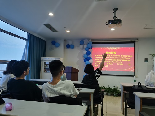 首先是趣味抢答,答对得10分,答错不扣分,题目内容涉及到妇产科学理论知识。在公平公正又精彩有趣的赛制下,同学们灵活运用教材上的知识,快速抢答,互不相让。李立杰老师在揭晓答案的同时也会对难度较大的题目进行简要的讲解。张宇晗、李钰婷、莫昊阳同学展现了扎实的基本功,你追我赶,成绩不相上下。