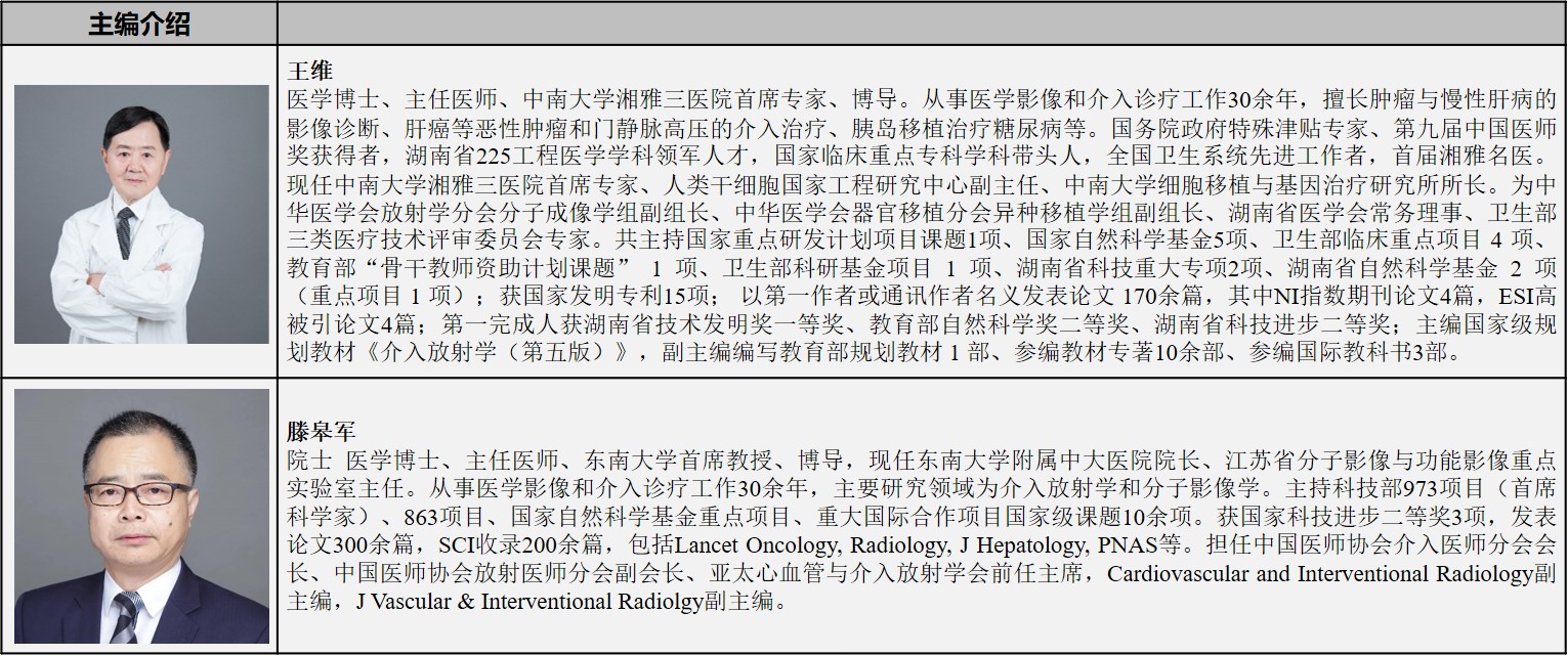 5月23日,经过一年多的筹备,由中国科学院院士、东南大学附属中大医院院长滕皋军教授与中南大学湘雅三医院首席专家、首届湘雅名医王维教授主编的国家卫生健康委员会“十四五”规划教材《介入放射学》第5版由人民卫生出版社出版,湘雅三医院放射科主任容鹏飞等23位教授担任副主编及编委,编写单位包括中南大学湘雅三医院、东南大学附属中大医院、浙江大学医学院附属第一医院、中山大学附属第一医院、复旦大学附属中山医院、华中科技大学同济医学院附属协和医院等20余所知名医学院校。
