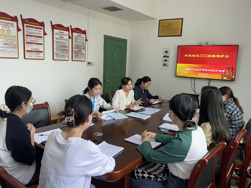 9月中下旬,开班仪式暨理论培训在外科楼15楼示教室举行。护理教研室主任毛平对学员表示欢迎,并介绍了规培项目的基本情况、培训安排、待遇,并总结了往届规培工作取得的成效。她希望大家能珍惜培训机会,树立目标,脚踏实地,不负韶华。