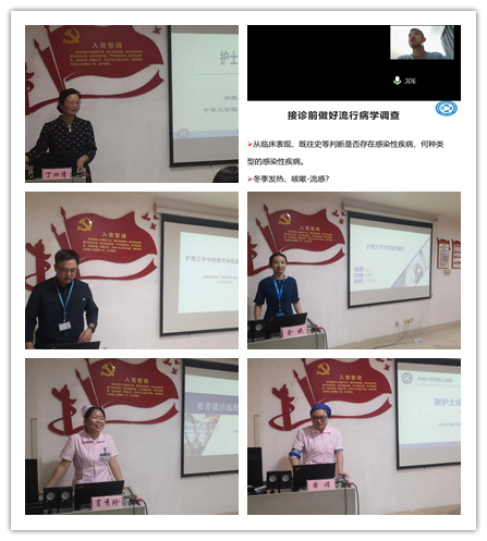 启动仪式后,护理教研室丁四清教授、医院感染与控制中心副主任周鹏程(通过线上)、医务部副主任刘华庆、科护士长余晓、护士长薛娟、护士长肖秀珍分别针对新冠肺炎疫情防控、护理文书与信息化、新护士的自我修养、法律法规与护理纠纷防范、患者医院就诊流程与沟通技巧等课程展开讲解。培训对规培护士尽快掌握相关工作制度、流程与要求,适应与融入临床工作,起到了积极的促进与引导作用。