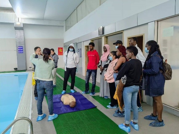 据相关数据显示,溺水是世界各地非故意伤害死亡的第三大原因。在我国,溺水是导致1至14岁儿童死亡的首位致死原因,已经成为中小学生意外死亡的“头号杀手”,因此,熟练掌握防溺水及救治溺水者的相关知识必不可少。第7小组同学全部为外籍学生,绝大部分来自于非洲及阿拉伯国家,很多同学没有游泳技能,更不用说具备防溺水及救治溺水者的能力,通过本次活动丰富了同学们防溺水及救治溺水者的相关知识,寓教娱乐一体,增强了同学们预防溺水及救治溺水者的应对能力,更增进了中外师生间的感情与交流。