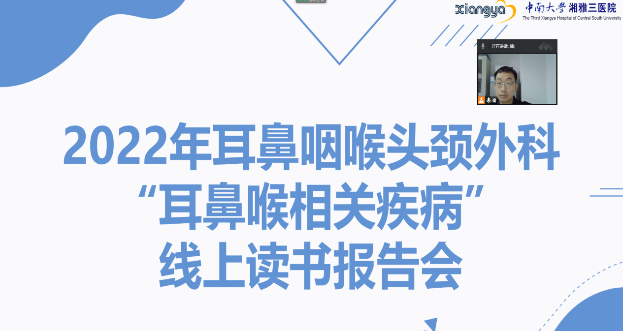 11月29日,为助学生扩展知识,提高素质,增强对疾病相关性的认识,耳鼻咽喉头颈外科教研室郜儒老师组织2019级临床专业五年制4组同学开展了“耳鼻喉相关疾病”线上读书报告会。