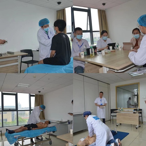 本次水平测试考试,设立平行、独立的2个考组,共163位学生参加考试,参加考试的每一位同学需依次参加6站考试,每站考试时间10分钟,考试内容包含病史采集、体格检查和基本操作技能,此外,沟通能力、人文关怀素养等考察也贯穿于每一站考试之中。在后台看到所有站点考官已提交成绩,考试流程控制管理人员在对讲机中随及下达“A组开始轮转”,在引导员的指引下,A组6名考生有序轮换至下一个站点开始考试。湘雅三医院考点人员安排到位,物品准备充分,考场纪律严明,考场秩序井然,考风考纪良好,考务充分踏实,受到了巡考、督查领导的高度肯定。