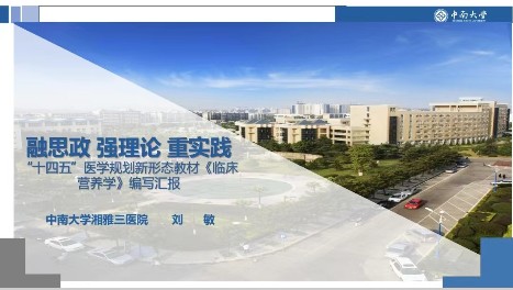 7月4日晚,中南大学湘雅三医院营养科刘敏教授作为高等教育出版社《临床营养学》第一主编,召集全国16家相关医院线上召开高等学校“十四五”医学规划新形态教材《临床营养学》(护理类)第一次编委会议,就《临床营养学》的编写要求等各项工作的开展进行讨论和布置。