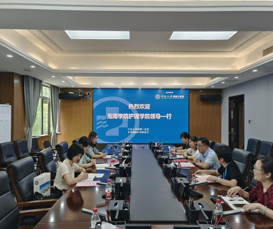 杨红艳介绍了湘南学院参会人员。何咏梅对中南大学湘雅三医院的热情接待表示感谢,希望能以本次交流为契机,本着双方优势互补、资源共享的原则,进一步推进院校合作、护教融合,未来就学生培养、师资提升、科学研究、毕业生就业等问题进行深入交流与合作,助力培养更多符合社会需求的高级护理人才。