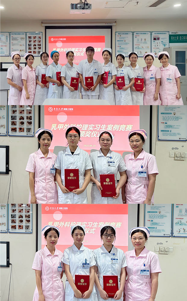 9月20日,中南大学湘雅三医院乳甲外科护理实习生护理案例汇报竞赛在外科楼十七楼示教室举行。医院护理学教研室副主任黄辉、易琦峰,乳甲外科教学组长余隽及新护士、规培护士参加,乳甲外科护士长王玲主持。中南大学湘雅护理学院和岳阳职业技术学院的11名护理实习生们参加了竞赛。