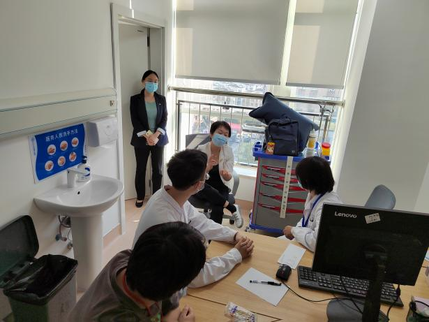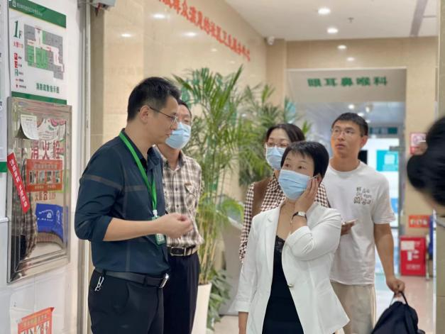 随后,湘雅三医院全科副主任王炼、全科副教授林桦陪同黄敏教授前往观沙岭社区卫生服务中心指导工作。服务中心党委书记、院长符正带领专家先后走访调研了门诊大厅、全科门诊、数字化预防接种专区、女性健康管理部,以及检验、放射、B超室和住院部,并就中心情况做基本介绍。黄敏教授认为:观沙岭社区卫生服务中心拥有良好的业务规划及高涨的教学热情,病源丰富、病种齐全,依托公卫、相辅相成,希望能继续与上级医院教学相长、共享资源。