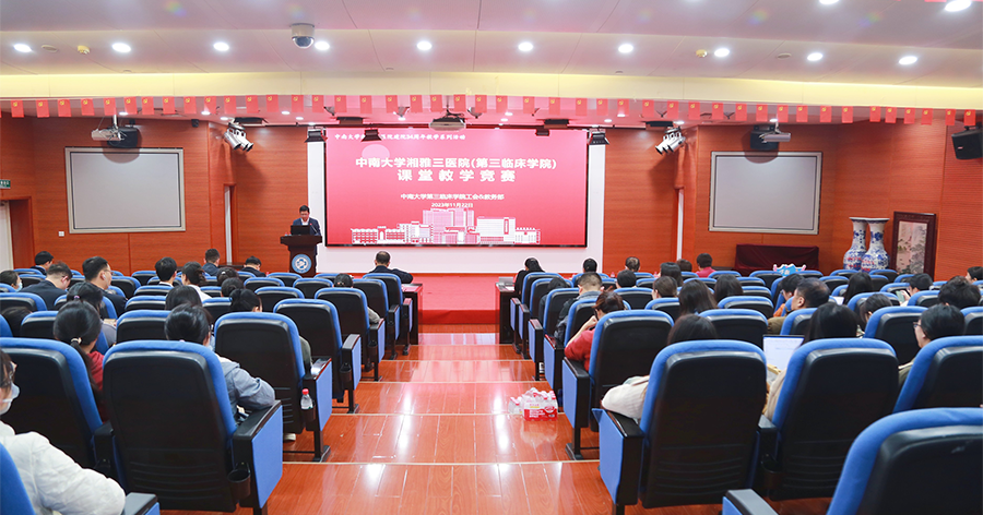 11月22日,中南大学湘雅三医院工会联合教务部在外科楼二楼学术报告厅举办“2023年中南大学湘雅三医院(第三临床学院)课堂教学竞赛”,医院院长江泓、副院长曹科出席。中南大学基础医学院管茶香教授、化学化工学院罗一鸣教授、马克思主义学院谭希培教授、湘雅护理学院张静平教授、生命科学院刘艳萍教授担任评委。各教研室参赛选手和现场观摩教职工、学生100余人参加。医院党委副书记杨飞龙主持。